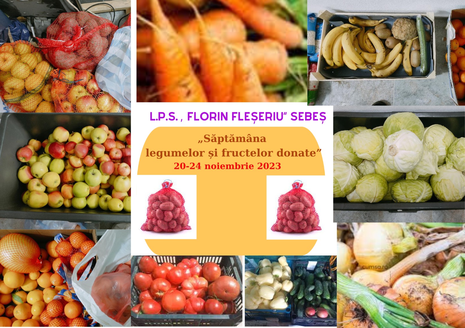 In perioada 20-24 noiembrie 2023, la Liceul cu Program Sportiv „Florin Fleșeriu" Sebeș, elevii voluntari și cadrele lor didactice au participat la campania „Săptămâna legumelor și fructelor donate”. Tot ce a fost strâns a fost dăruit din suflet acelora care au primit cu bucurie darurile noastre. Mii de mulțumiri tuturor sufletelor generoase din școala noastră care, prin gesturile lor mărunte, au realizat fapte bune